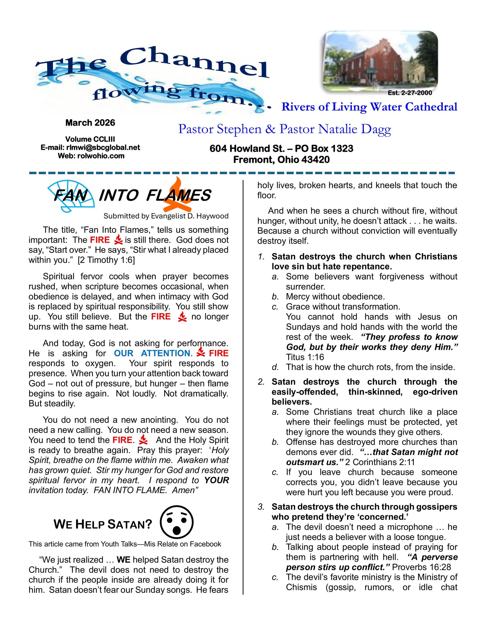 A monthly communication tool – The Channel – is targeted towards the local membership and presents inspirational articles and upcoming events. In addition, this newsletter also allows the Body of Christ to stay connected with various messages and announcements from ministers, lay members, and department leaders. Current issues will be posted. To see previous articles, please visit our Channel Library.