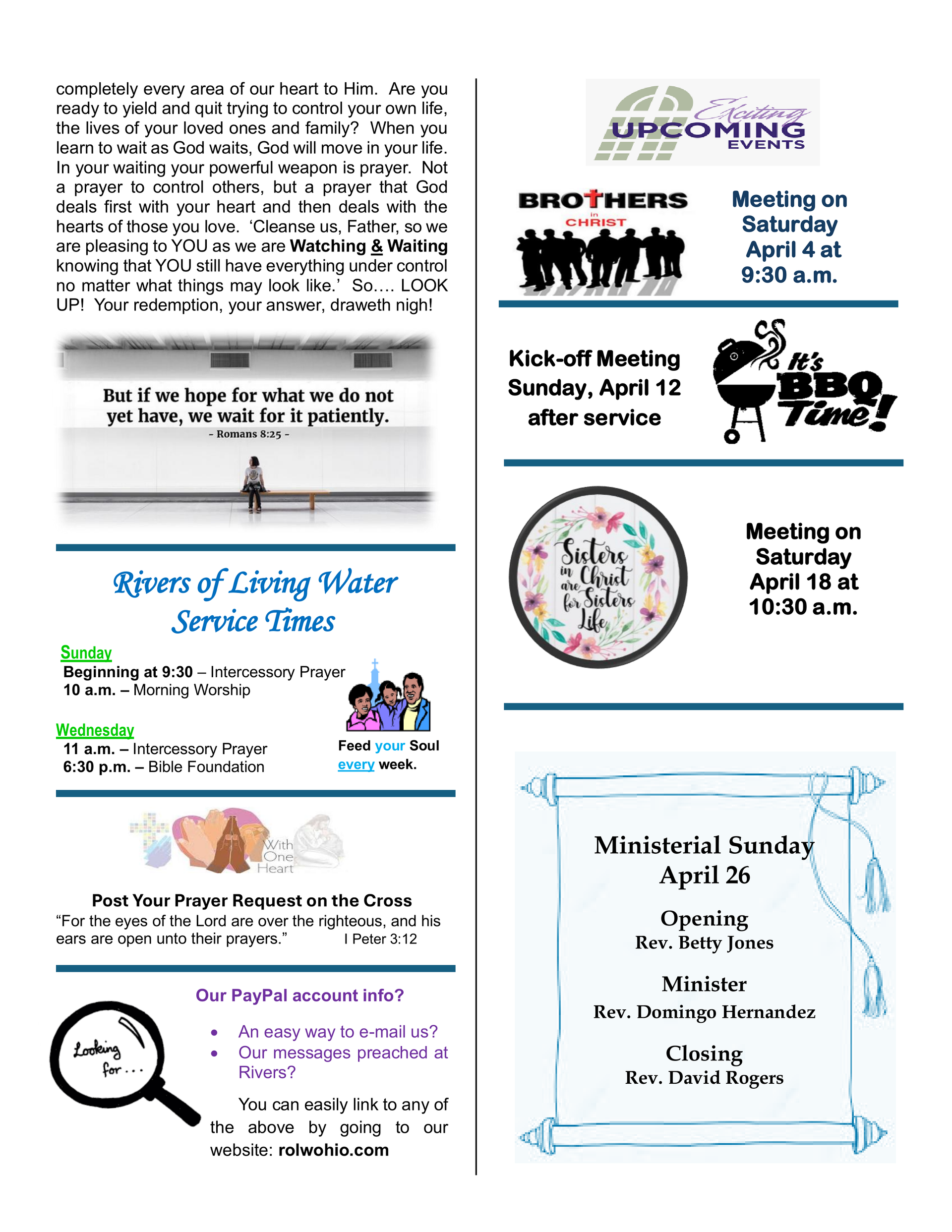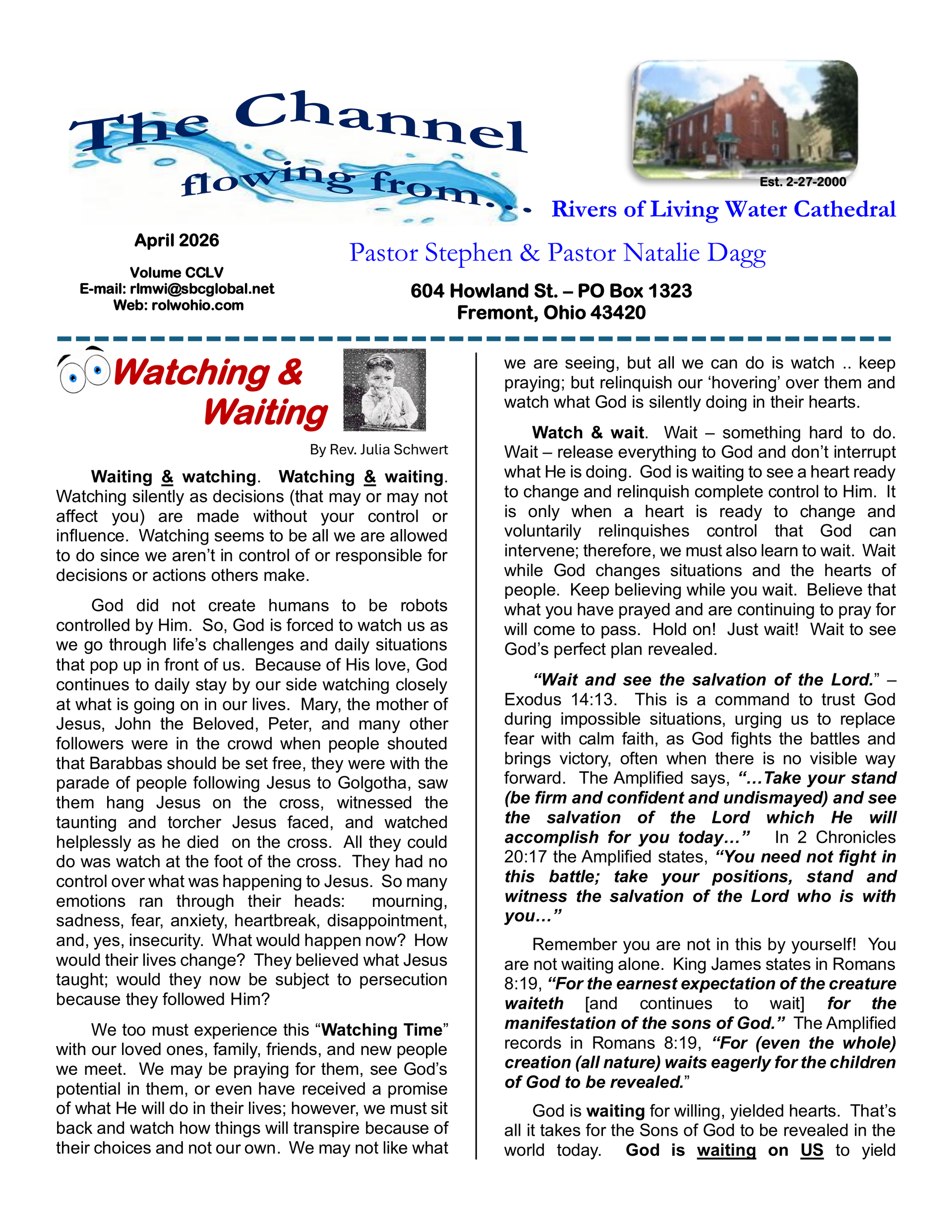 A monthly communication tool – The Channel – is targeted towards the local membership and presents inspirational articles and upcoming events. In addition, this newsletter also allows the Body of Christ to stay connected with various messages and announcements from ministers, lay members, and department leaders. Current issues will be posted. To see previous articles, please visit our Channel Library.